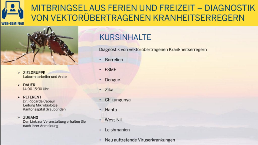 Mitbringsel aus Ferien und Freizeit - Diagnostik von vektorübertragenen Krankheitserregern (WEB220626) **NEU**
