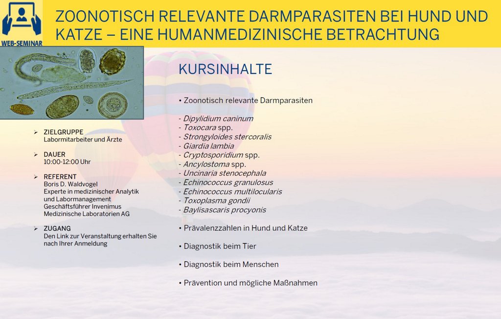 Zoonotisch relevante Darmparasiten bei Hund und Katze – eine humanmedizinische Betrachtung (WEB211026V) ***NEU***
