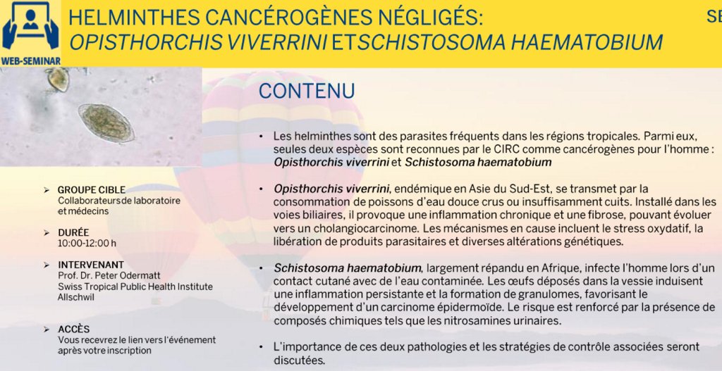 Helminthes cancérogènes négligés : Opisthorchis viverrini et Schistosoma haematobium ** Nouveau **