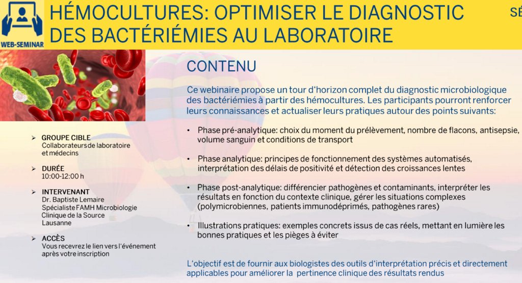HÉMOCULTURES: OPTIMISER LE DIAGNOSTIC DES BACTÉRIÉMIES AU LABORATOIRE **NOUVEAU**