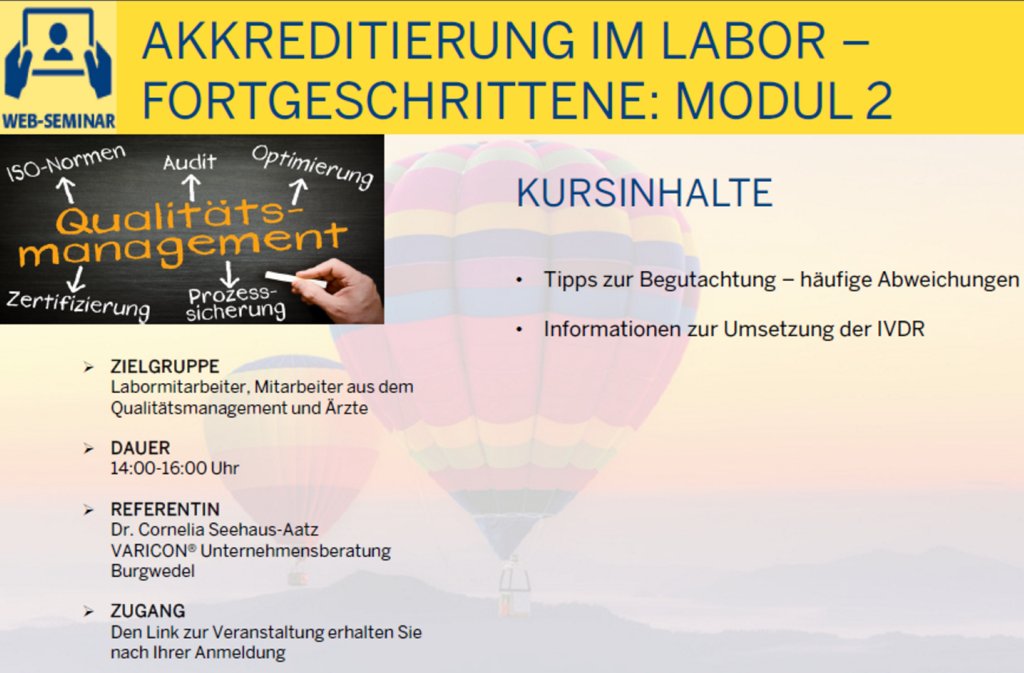 Akkreditierung im Labor – Fortgeschrittene: Modul 2 (WEB180526N)