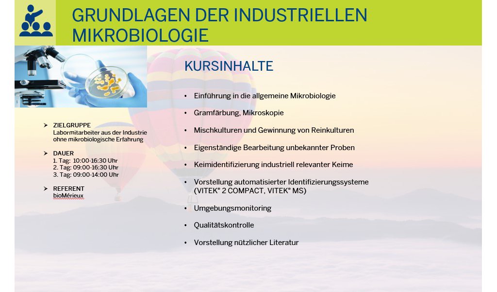Zielgruppe: Labormitarbeiter aus der Industrie ohne mikrobiologische Erfahrung