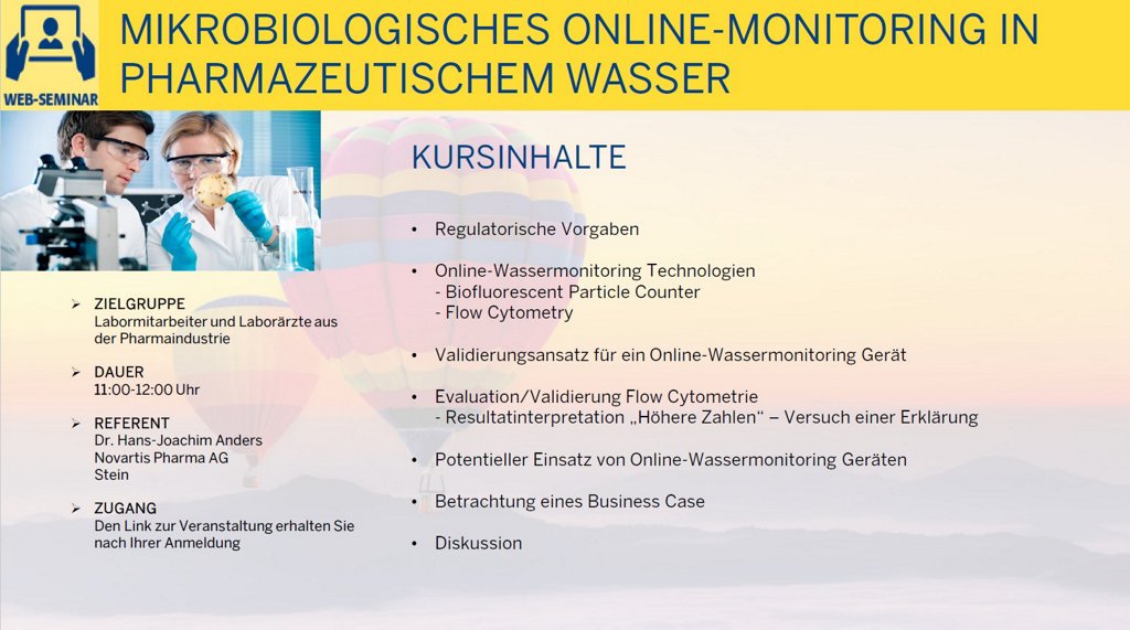 Mikrobiologisches Online-Monitoring in pharmazeutischem Wasser (WEB300926V) ***NEU***