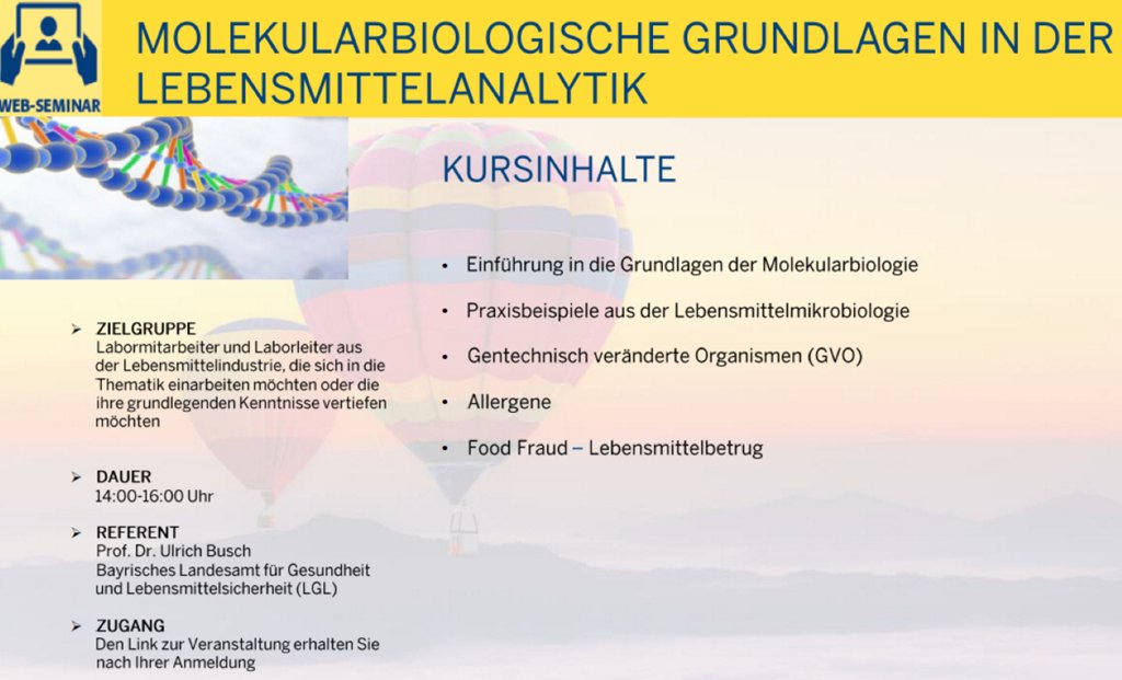 Molekularbiologische Grundlagen in der Lebensmittelanalytik (WEB051026N) **NEU**
