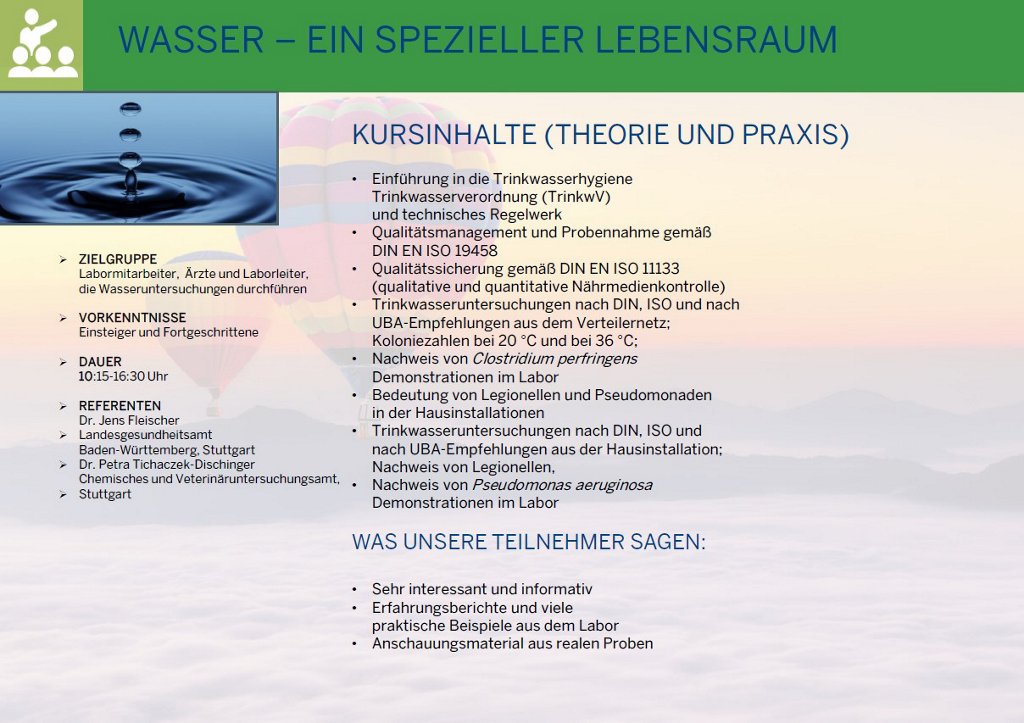 Zielgruppe: Labormitarbeiter, Ärzte und Laborleiter, die Wasseruntersuchungen durchführen