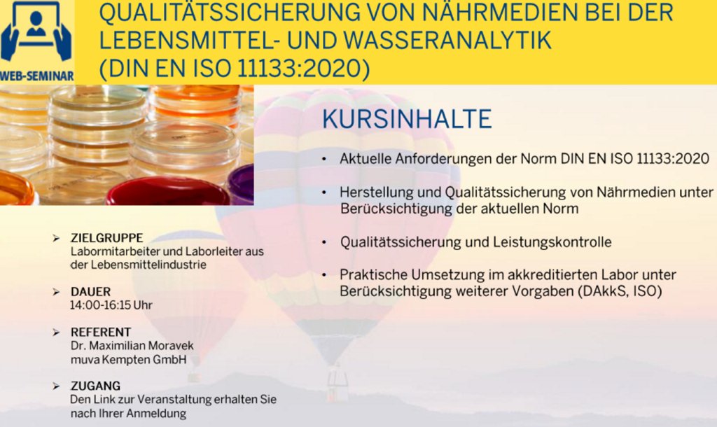 Qualitätssicherung von Nährmedien bei der Lebensmittel- und Wasseranalytik (DIN EN ISO 11133:2020) (WEB261126N)