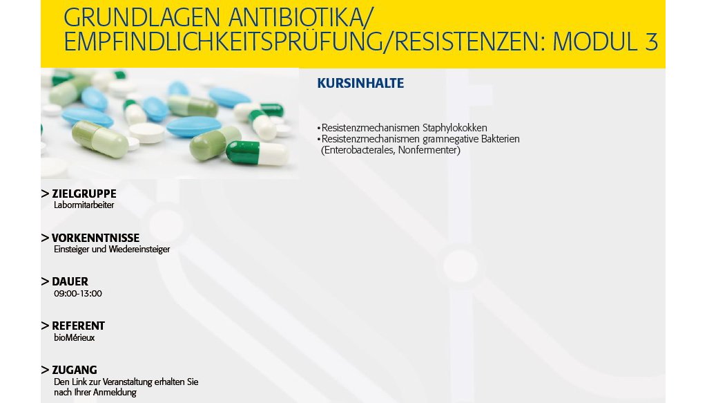 Grundlagen Antibiotika/Resistenzen /Empfindlichkeitsprüfung: Modul 3 (WEB051125V)