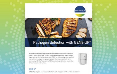 The GENE-UP® Salmonella (SLM) kit is a real-time Polymerase Chain Reaction (PCR) assay for the detection of Salmonella in food, pet food, and environmental samples. GENE-UP® SLM quickly delivers results in under an hour thanks to its intelligent workflow and flexible platform. It is also AOAC and AFNOR validated.